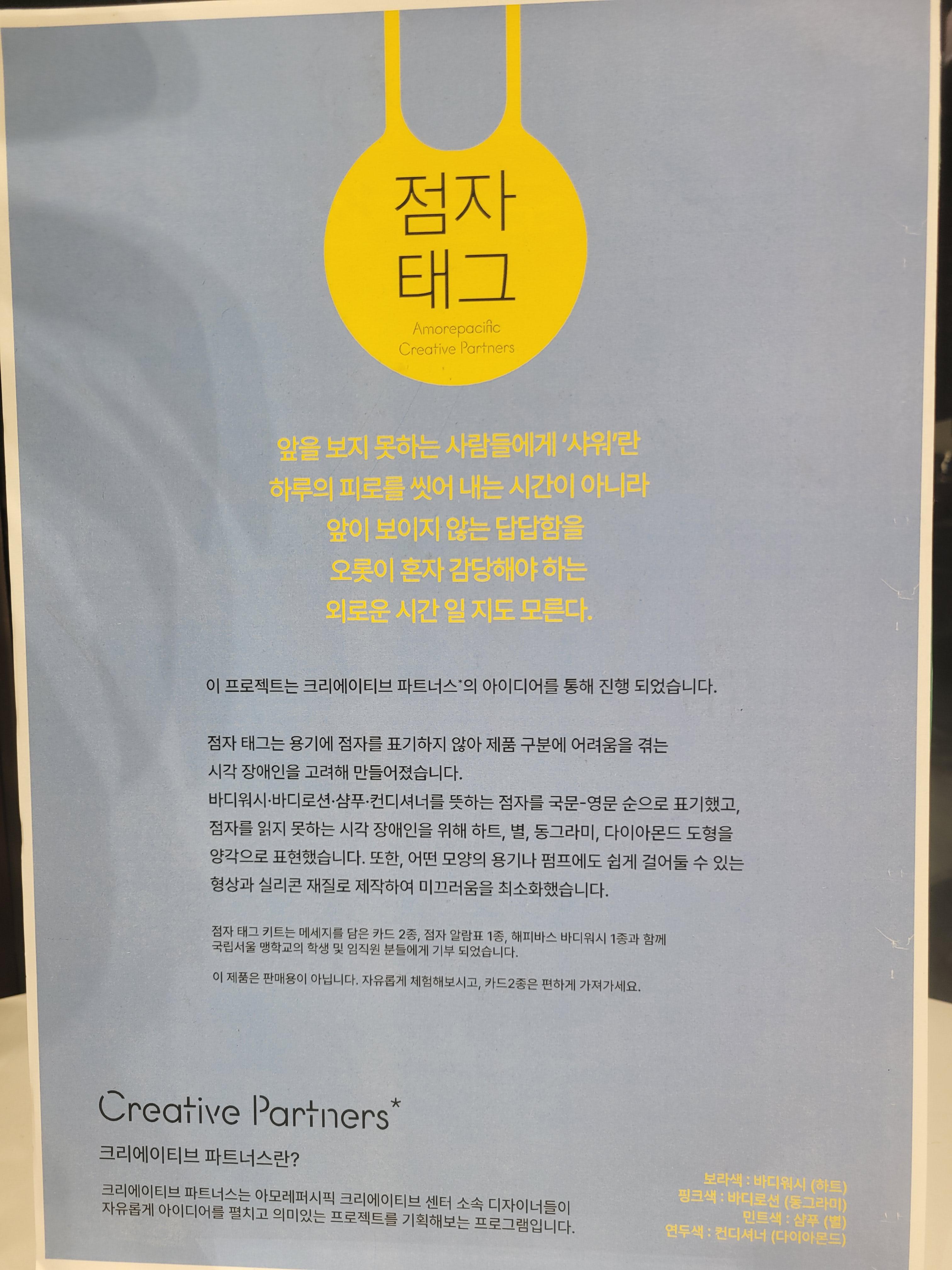 시각장애인을 위한 점자태그가 도입된 화장품 용기가