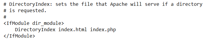 보안때문에 아파치 웹서버 설정파일 "httpd.conf" 의 "DirectoryIndex" 에