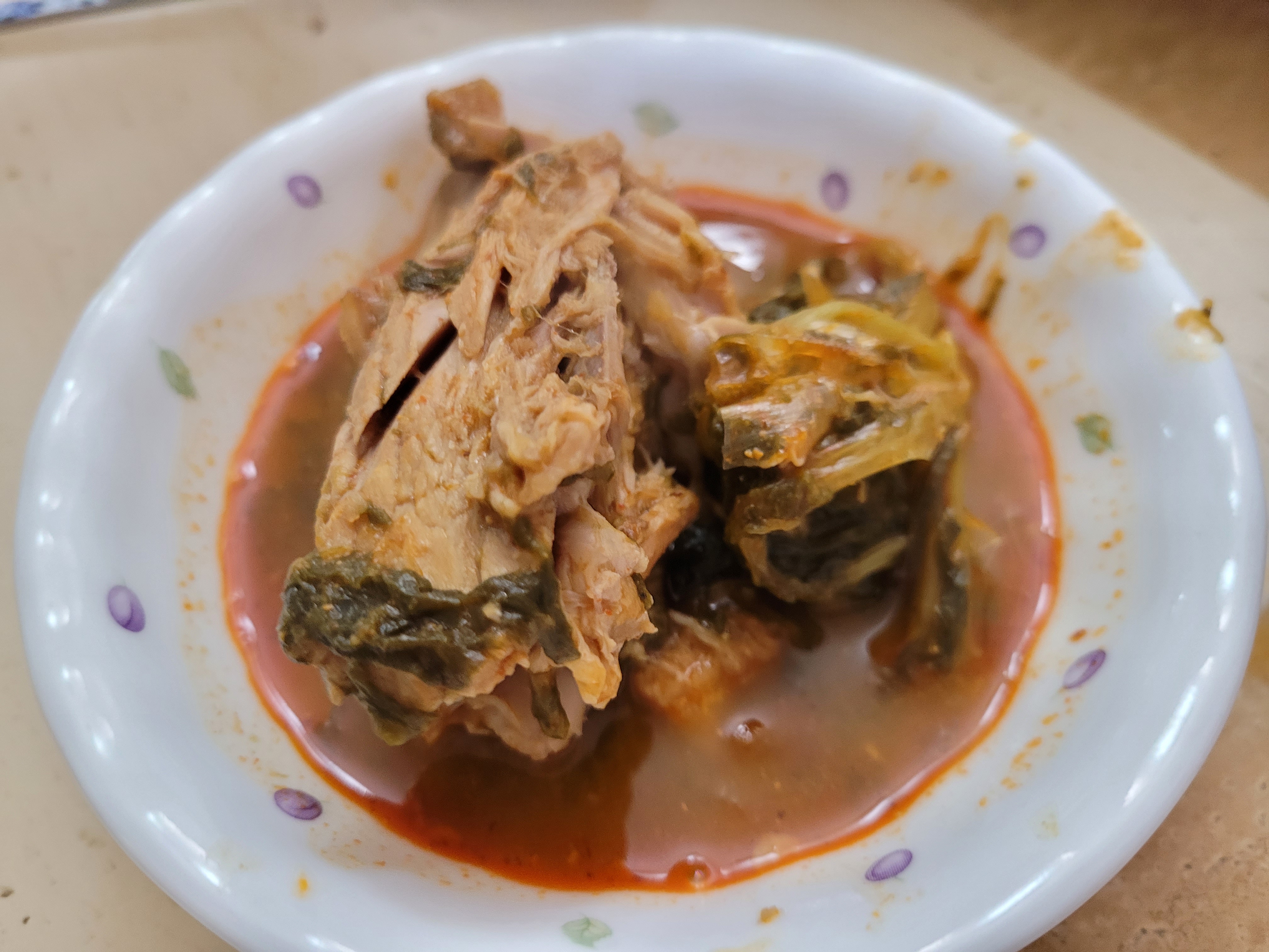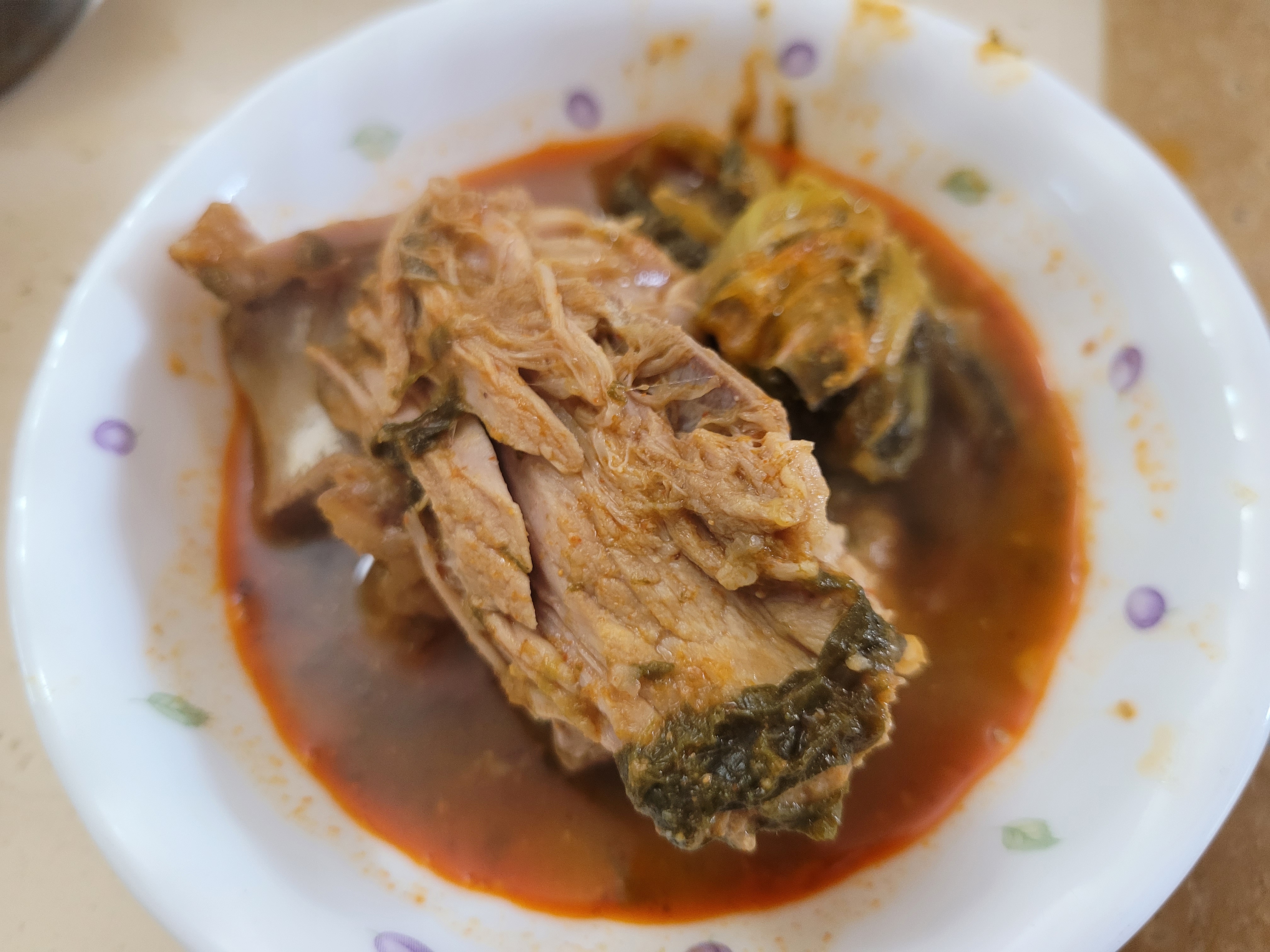 구성: 라면사리1개+겨자소스2개, 감자탕 5kg (9~10인분, 느낌은 4인분) / 국내산 돈등뼈