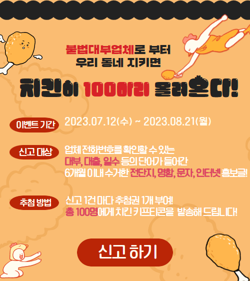 불법대부광고에 사용된 전화번호를 신고하는 국민참여 이벤트를 진행 중 입니다.