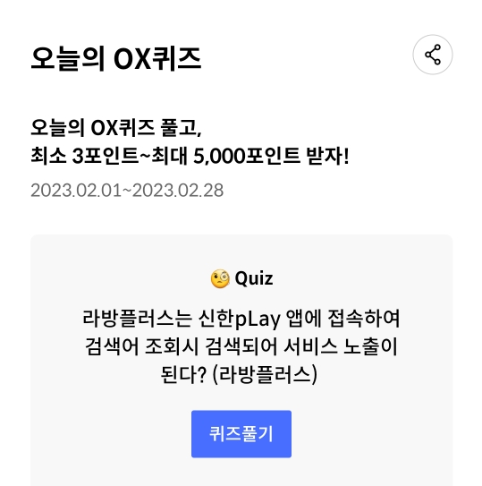 신한플레이 오늘의 OX 퀴즈 2월 18일(토요일)