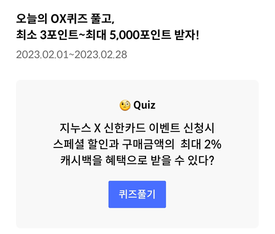 신한플레이 오늘의ox퀴즈 2월 25일(토요일)