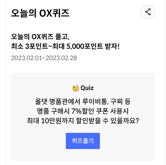 오늘의 OX퀴즈에 참여하고 최대 5,000P 받자!