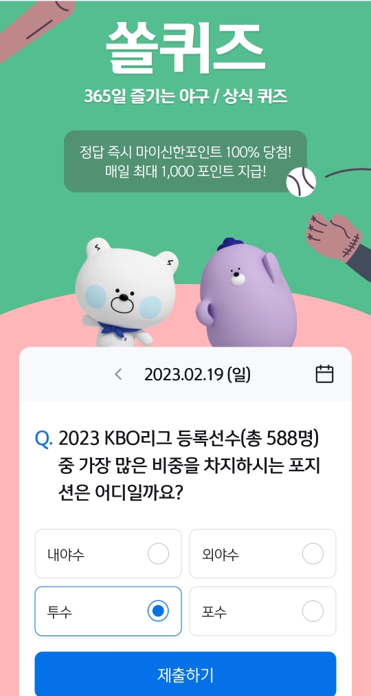 신한SOL 야구/상식 퀴즈