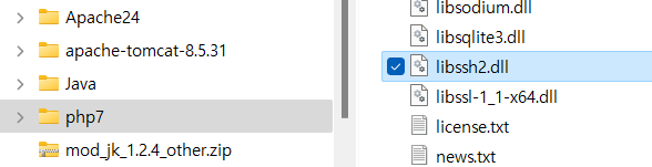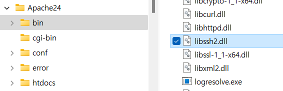"Apache\bin" 폴더에 PHP 에서 가져온 "libssh2.dll" 파일을 복사 합니다.