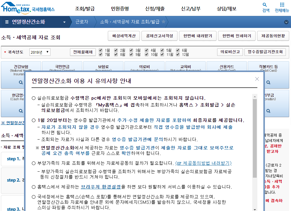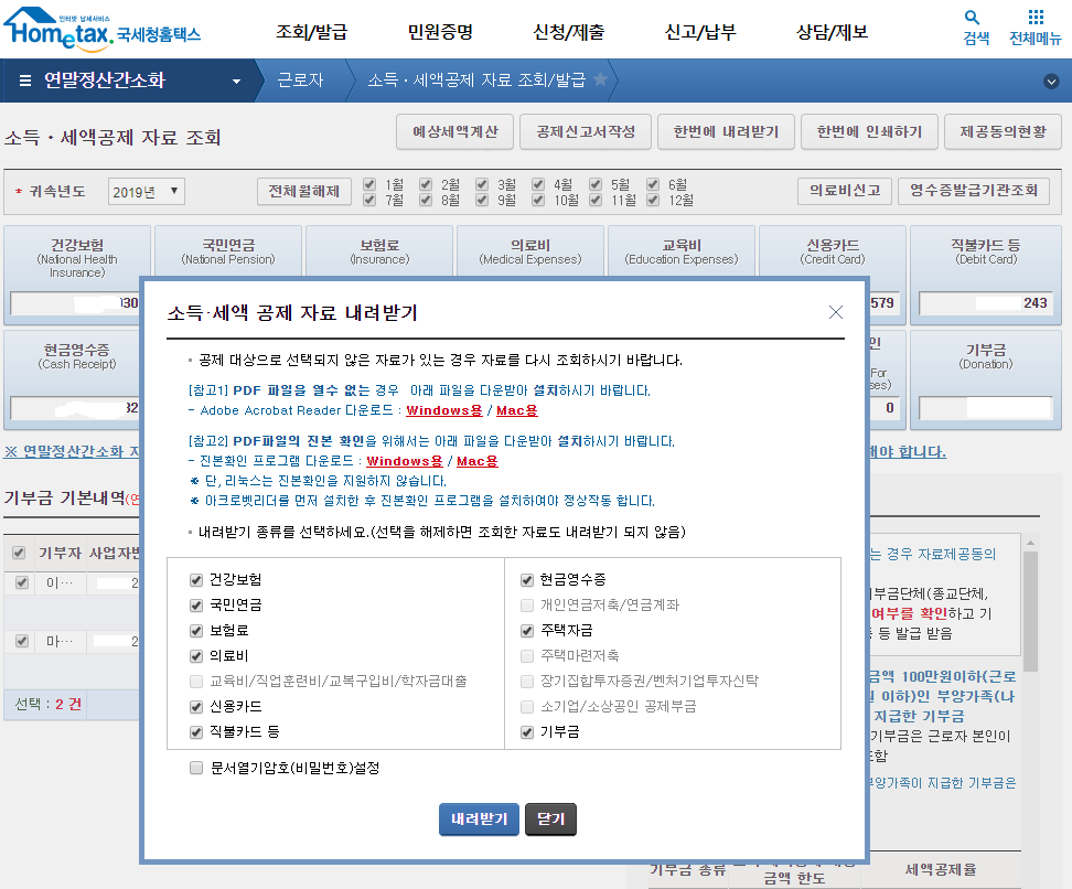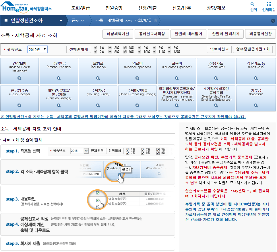 # 연말정산간소화에서 공제항목과 금액을 확인 합니다.