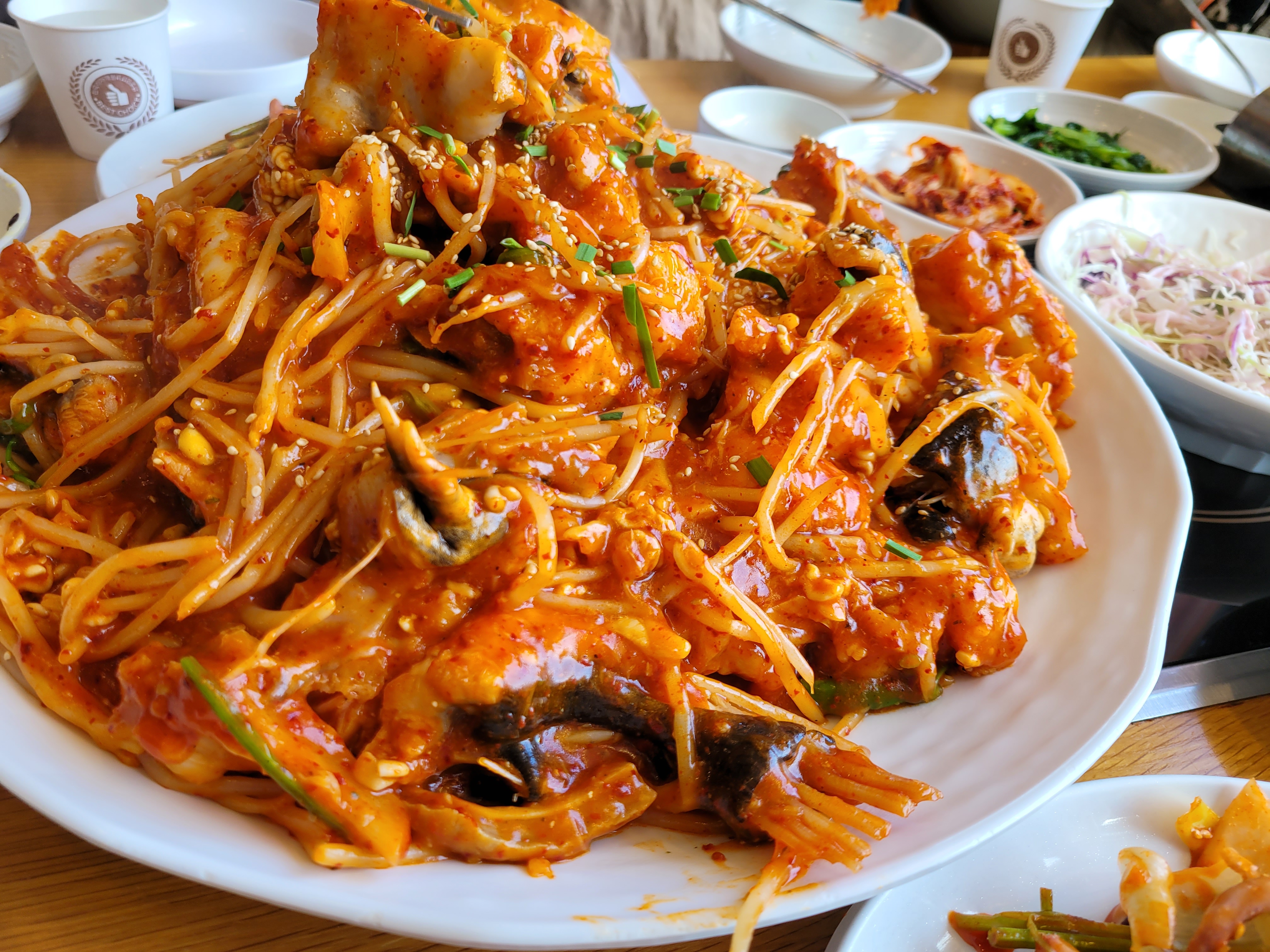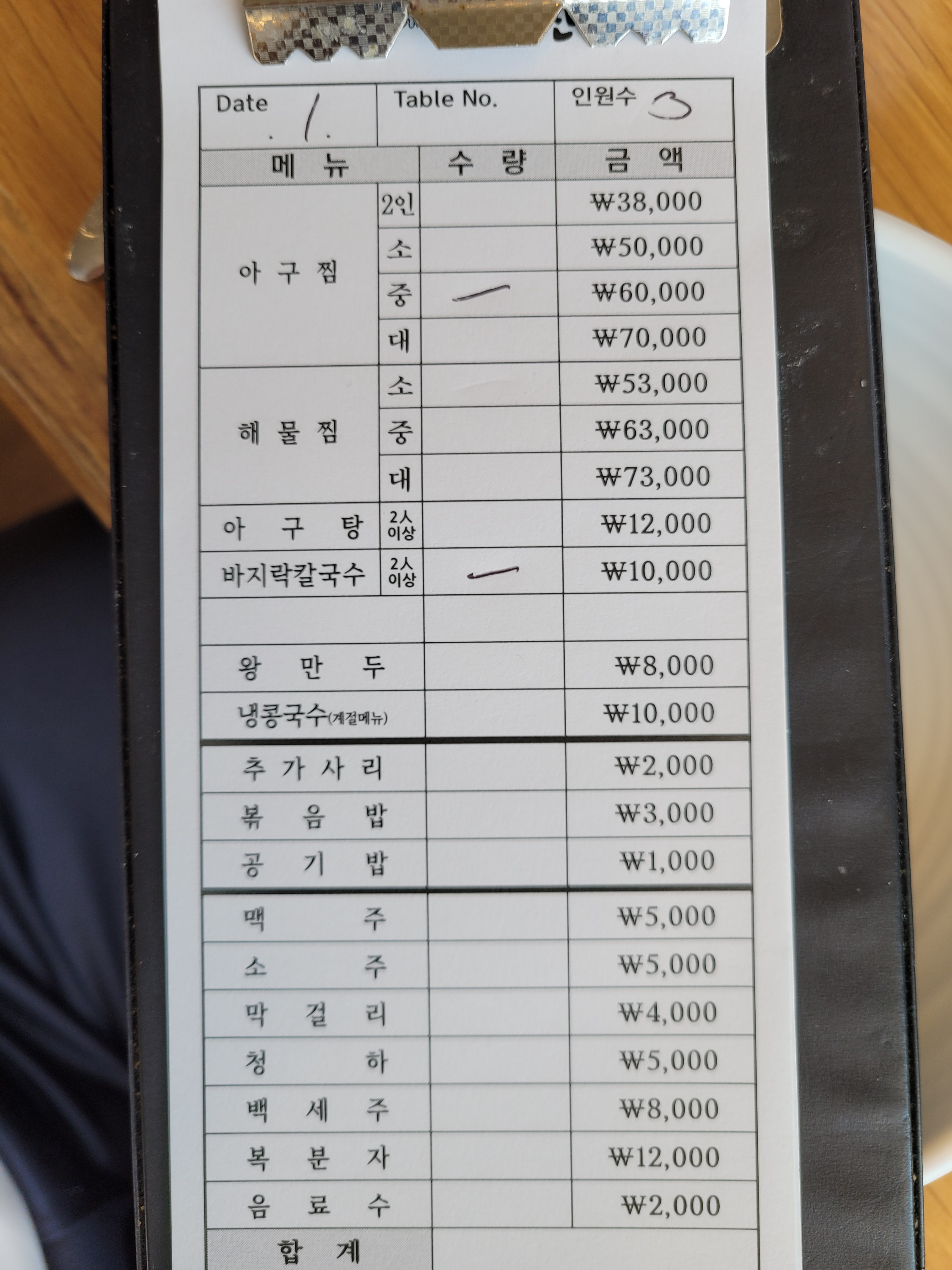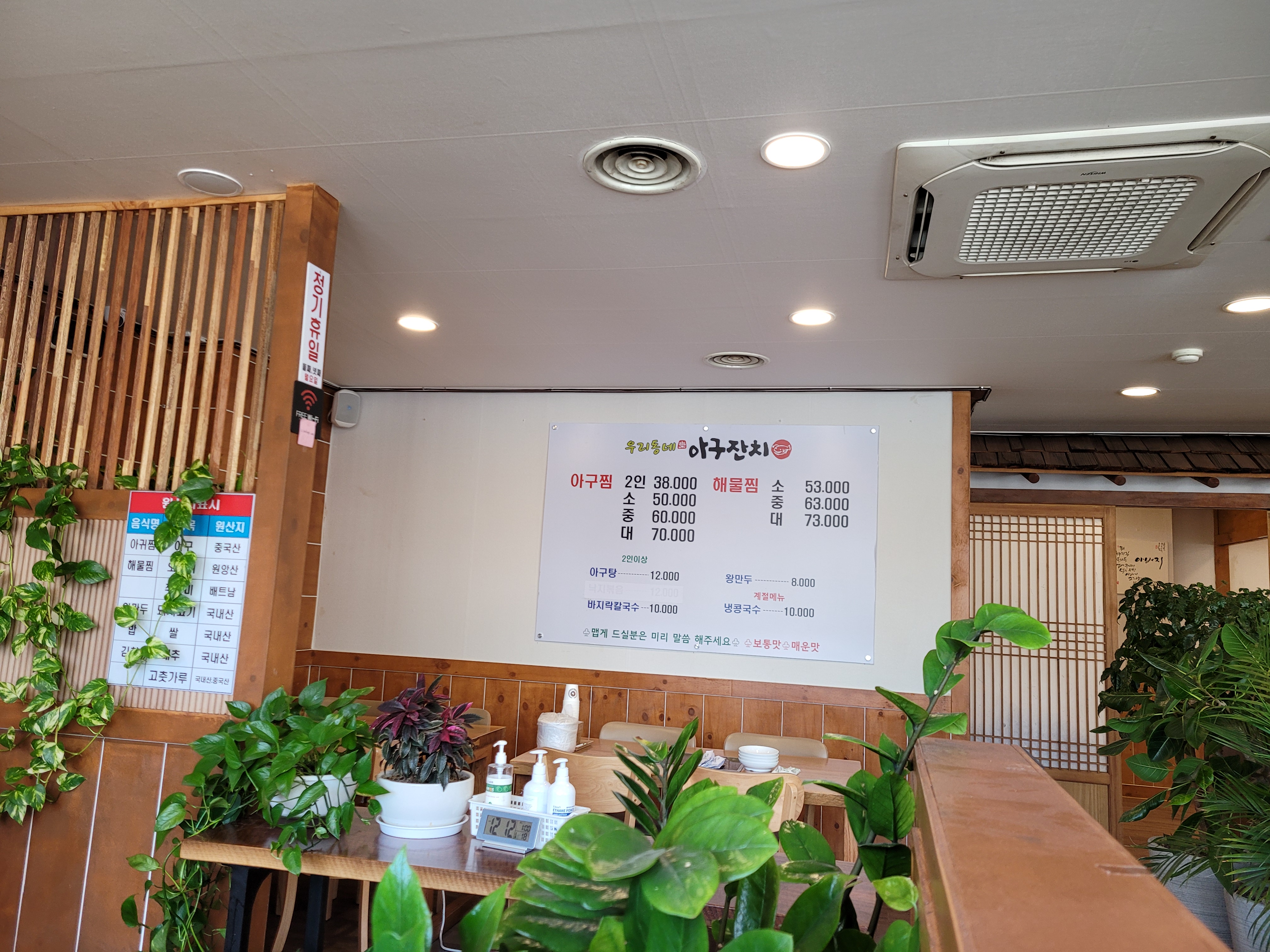 5명이서 아구찜 "중" 크기에 바지락칼국수 먹고