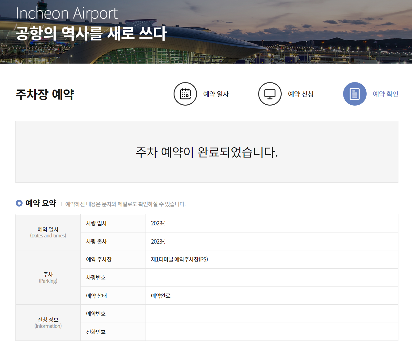 (주차장 위치) 제1,2 여객터미널 예약주차장 위치가 다르므로 주차장의 위치를 꼭 확인해 주세요