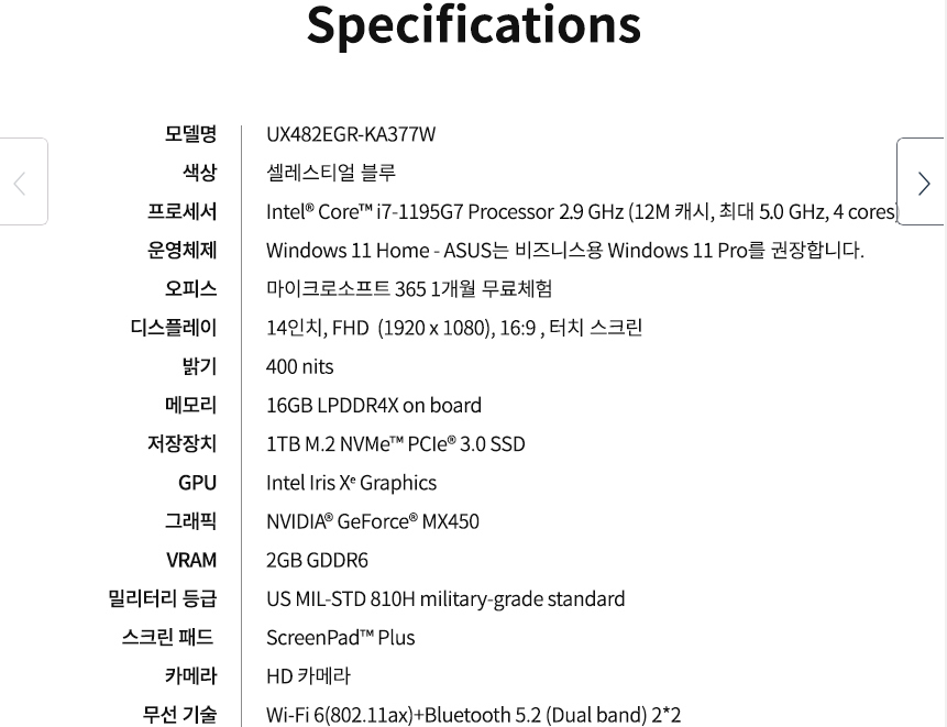 ASUS 젠북듀오 UX482EGR-KA377W 최종 112만원 (i7/MX450/1T/16GB/win11)
