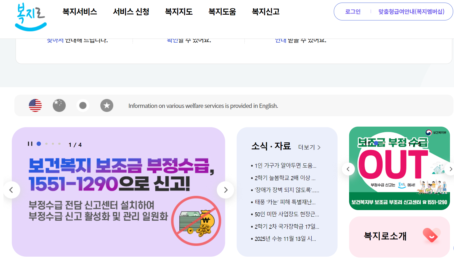 복지로는 각 부처의 복지서비스 정보를 모아