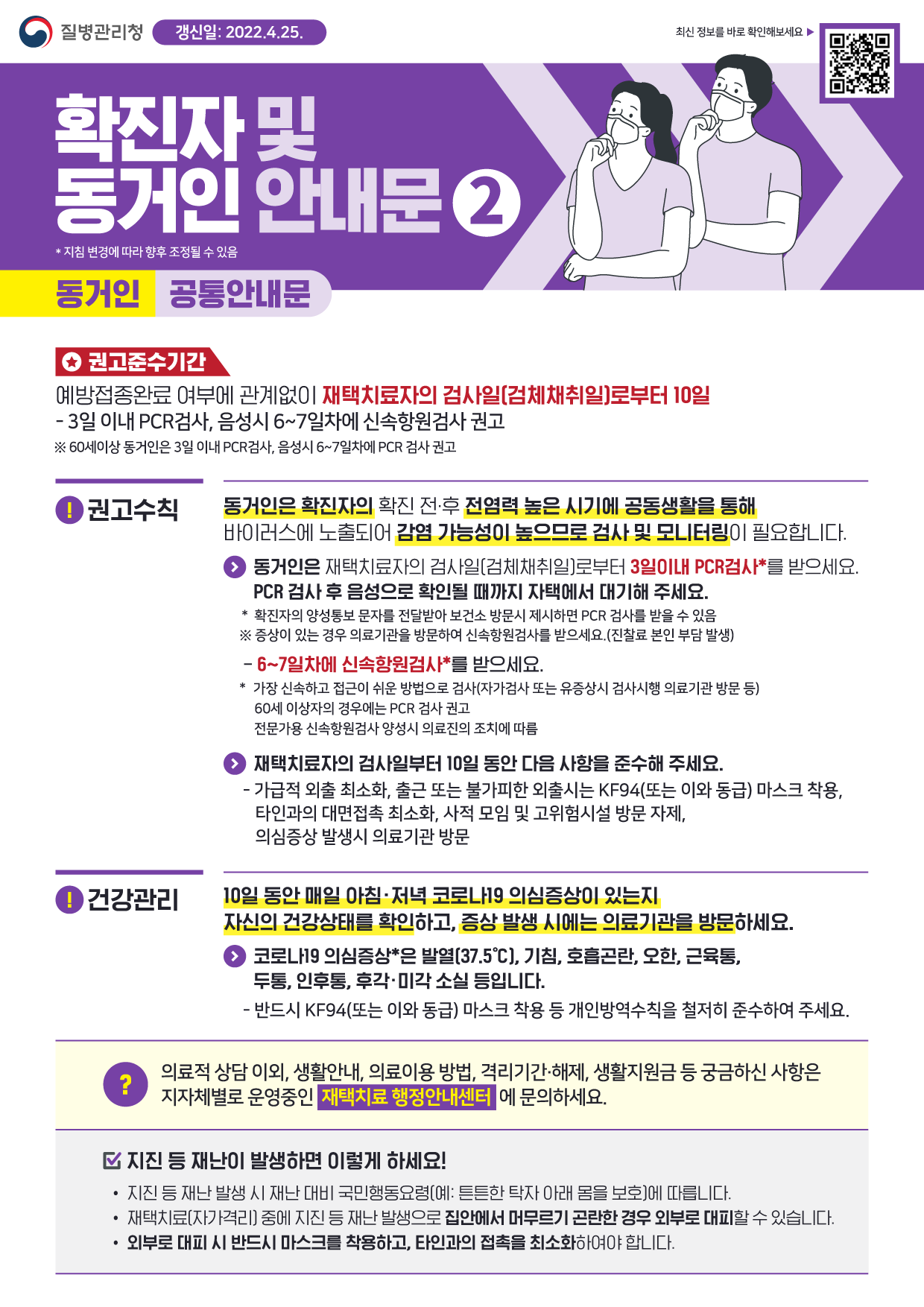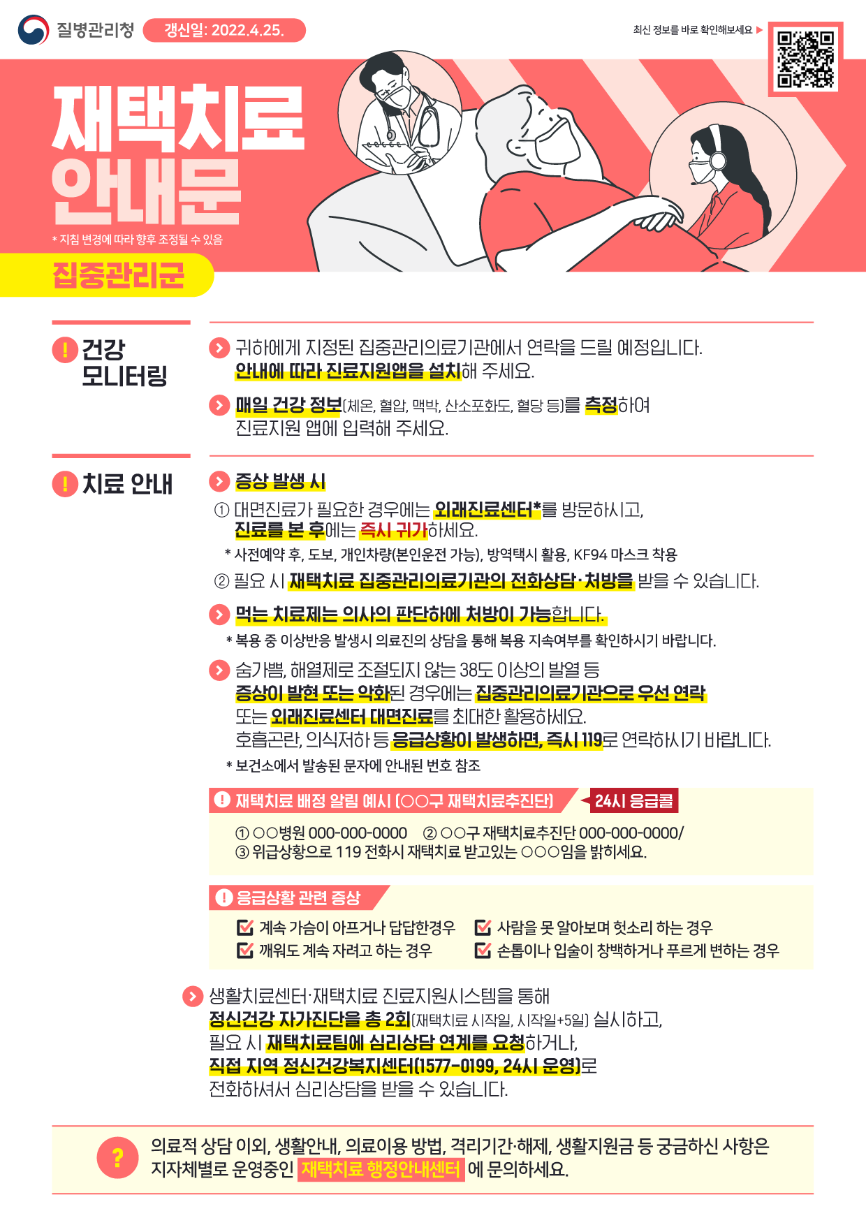 ※ 입원 및 격리자 생활지원 관련 사항은 https://url.kr/soeajz 에서 확인해 주세요.