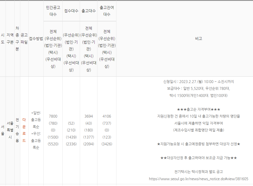 서울 법인 보조금은 잔여대수가 없지만 일반이나 우선은 많이 남아 있습니다.