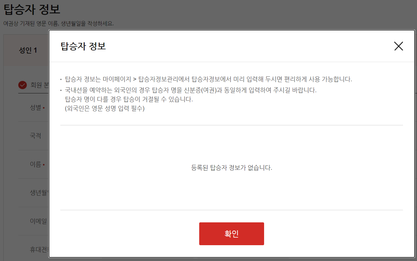 • 탑승자 정보는 "마이페이지 > 탑승자정보관리" 에서 탑승자정보에서 미리 입력해 두시면 편리하게 사용 가능합니다.