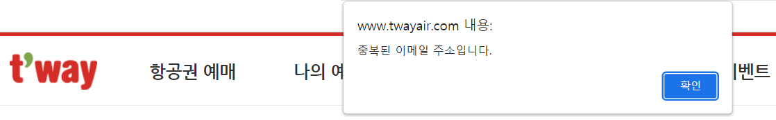 회원가입을 해보니 "중복된 이메일"로 나오네요?