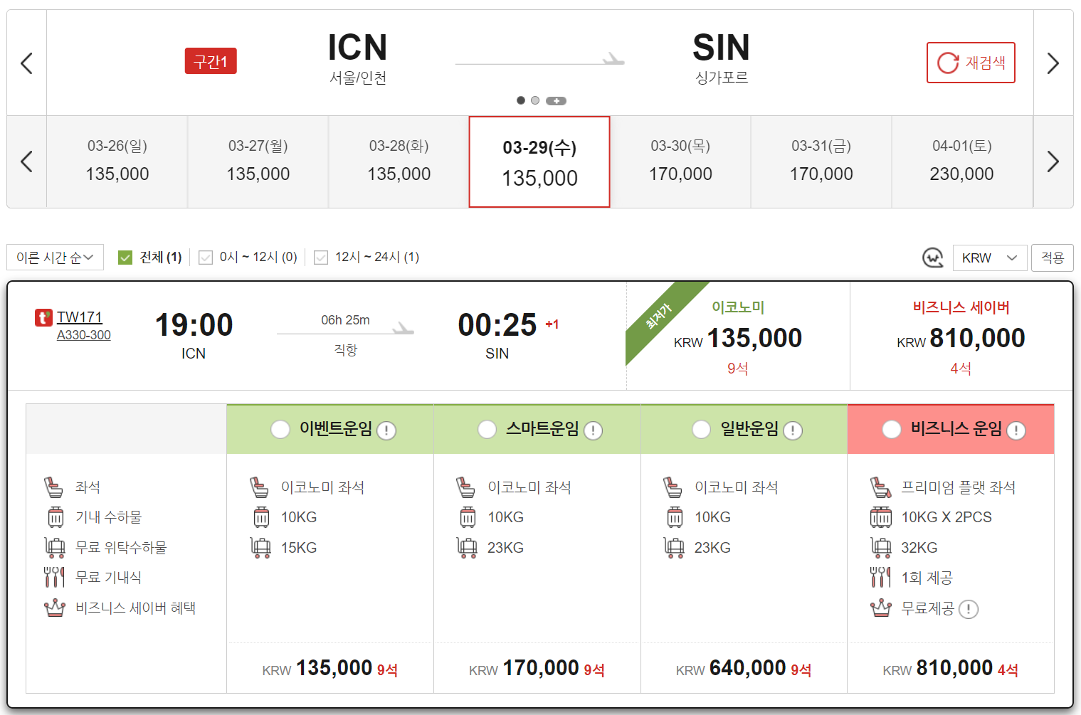 • 영업 정책에 따라 노선 별 탑승기간 중 해당 특가운임이 적용되지 않는 일자도 발생될 수 있으니 이 점 양지하여 주시기 바랍니다.