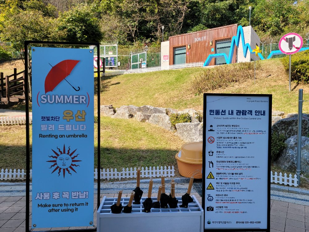 우산도 빌릴 수 있고, 민통선 관람객 안내도 잃어주시고 출발
