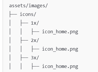 DPI 별 디렉토리: Flutter는 고해상도를 지원하기 때문에 DPI별로 이미지를 관리하면 좋습니다.