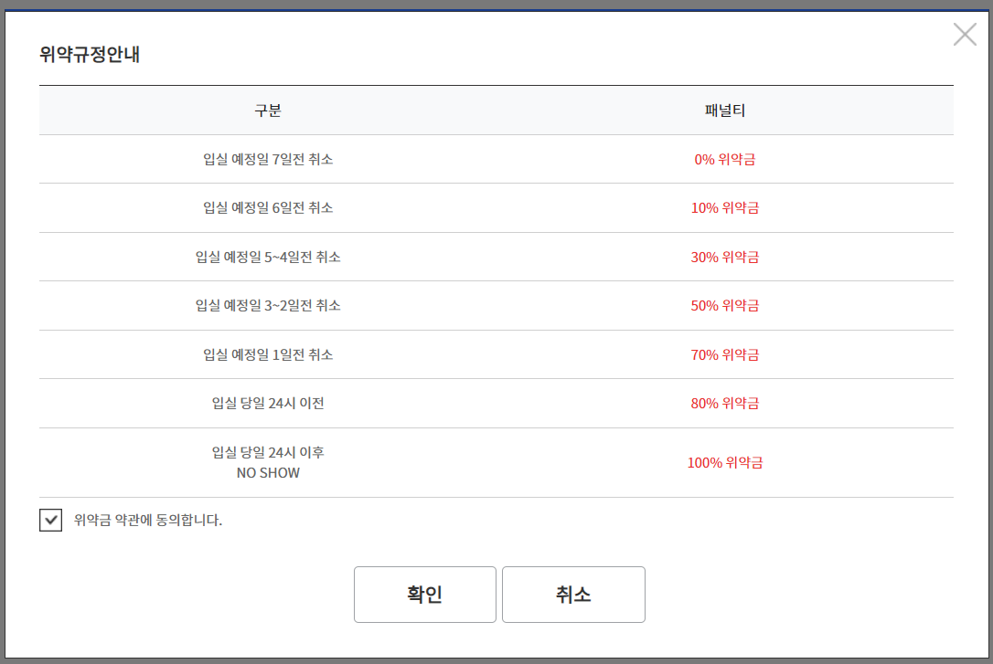 예약 후 7일전 취약금 없이 취소 가능합니다.