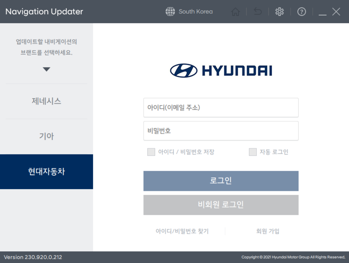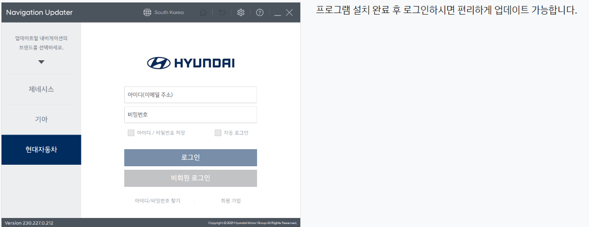 앞서 진행한 길~고 길었던 회원가입절차를 마무리 하셨으면 다시 Navigation Updater 창으로 오셔서 로그인을 진행 합니다.