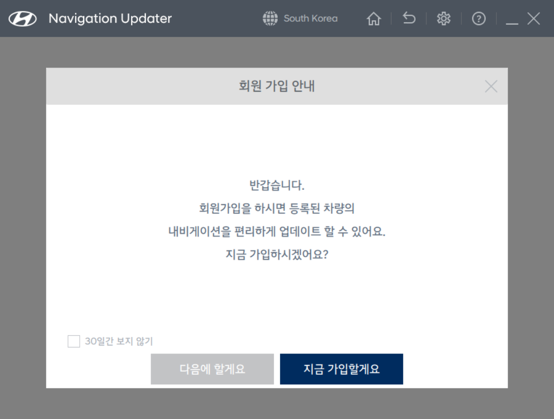 내비게이션 업데이트 중 지루한 회원가입 절차가 존재 합니다.