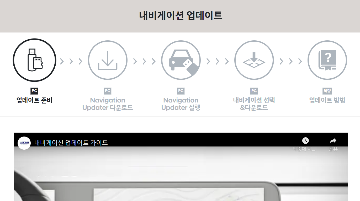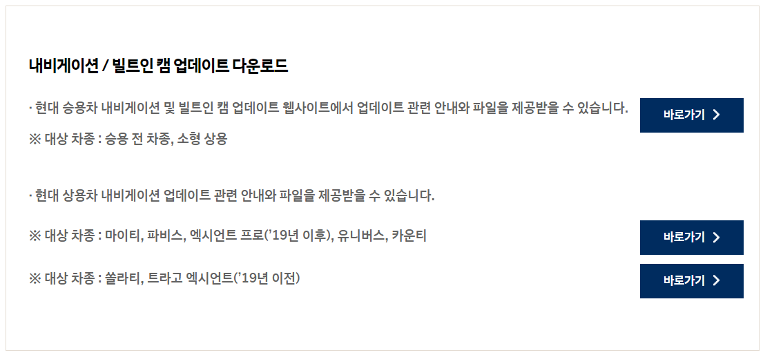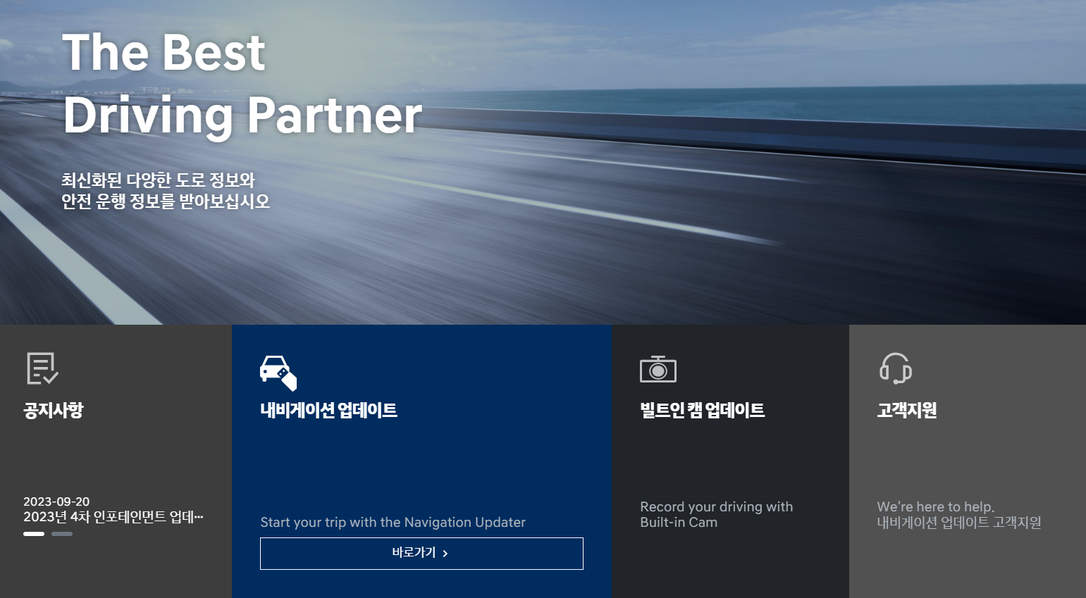 현대자동차 빌트인 내비게이션 업데이트 안내 페이지는 아래 링크에서 확인
