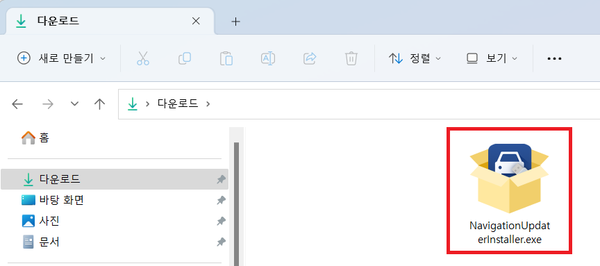 다운로드가 완료되면, 윈도우 탐색기에서 다운로드 받은 "NavigationUpdaterInstaller.exe" 를 실행 합니다.