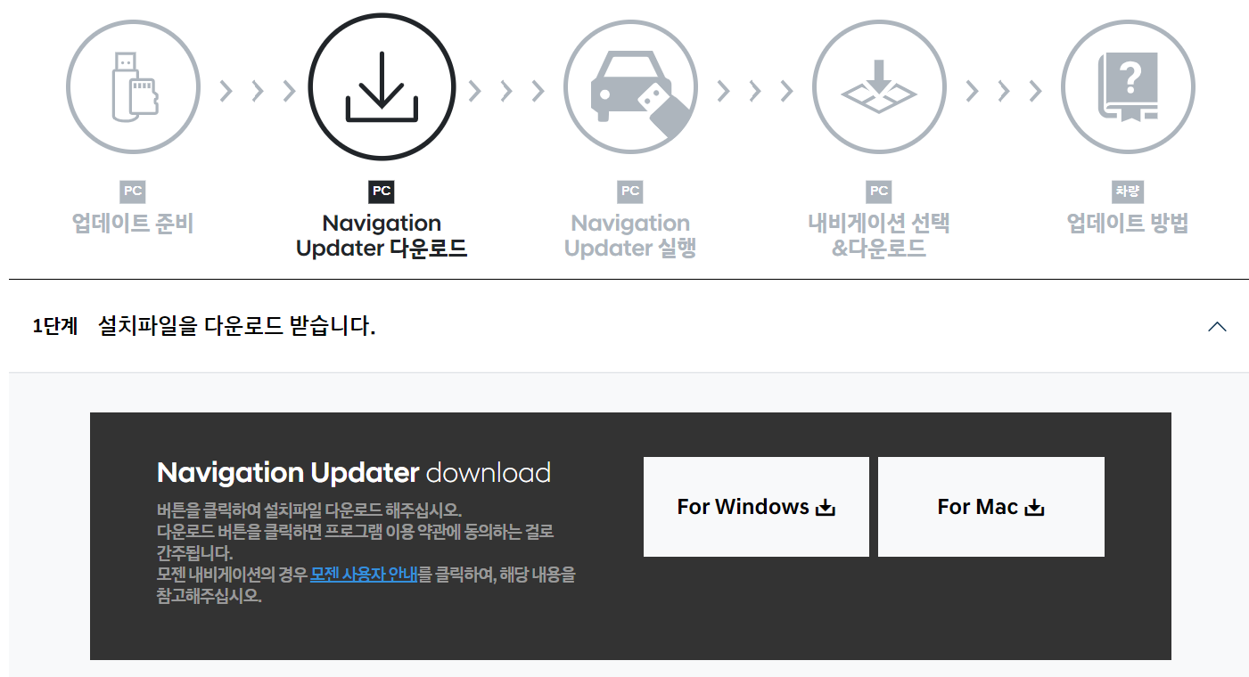 메모리를 설치하셨으면, "[PC] Navigation Updater 다운로드" 를 클릭 합니다.