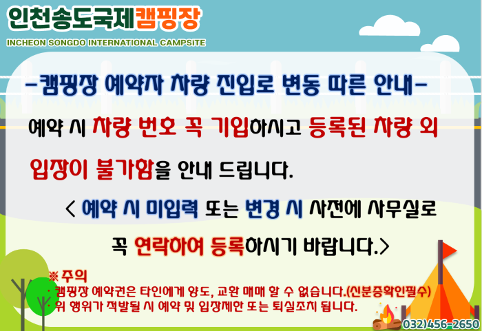 예약시 캠핑인원과 입차 차량번호 필수 기재