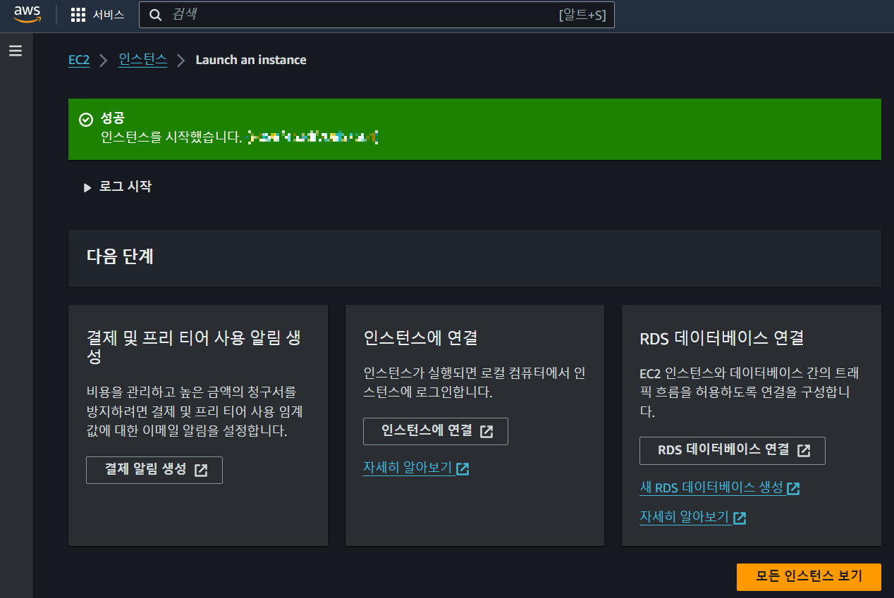 - 인스턴스 생성 성공~ 확인하기