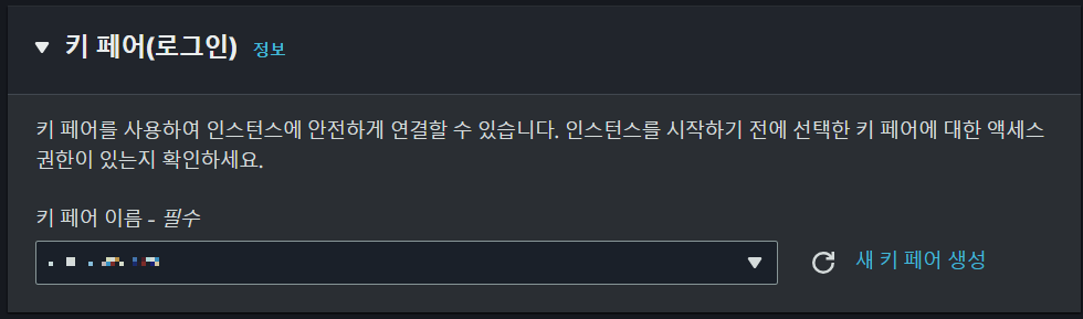 키 페어를 사용하여 인스턴스에 안전하게 연결할 수 있습니다. 인스턴스를 시작하기 전에 선택한 키 페어에 대한 액세스 권한이 있는지 확인하세요.