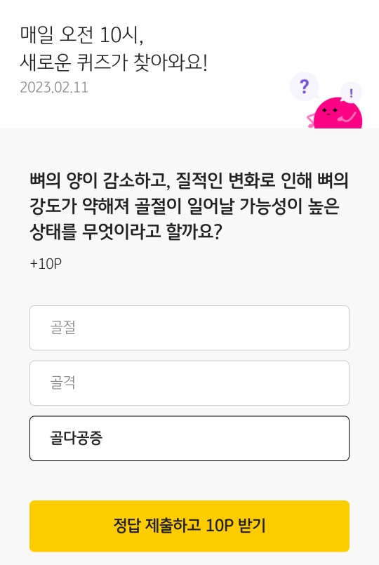| 쏠퀴즈 쏠야구 2월 11일(토요일) - 신한플레이 출석체크 (0) | 2023.02.11 |