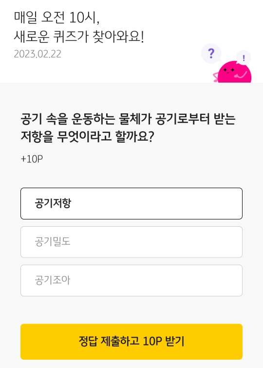 정답을 맞추면 KB포인트 10포인트를 획득합니다.