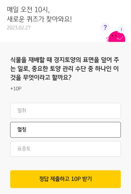 KB페이 리브메이트 오늘의퀴즈 2월 27일 월요일