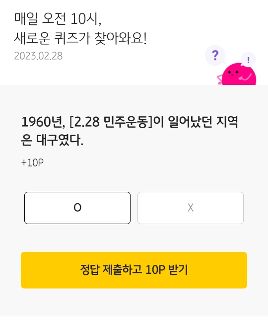 | 쏠야구 쏠퀴즈 오늘의ox퀴즈 2월 28일(화요일) 신한플레이 (0) | 2023.02.28 |