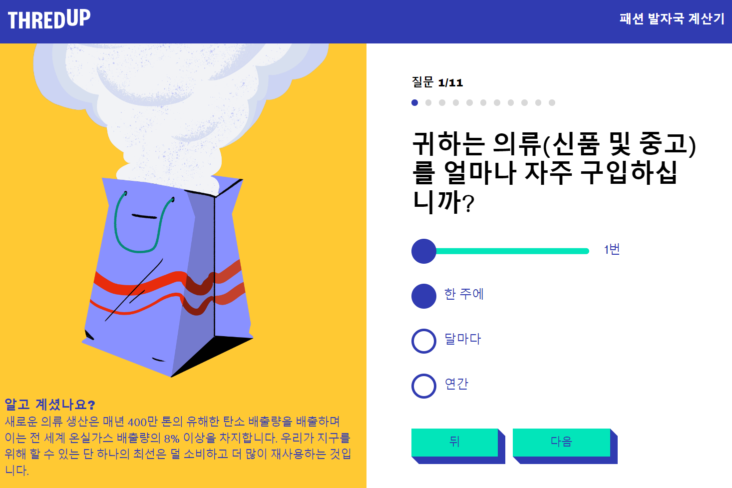 내 옷소비 패턴을 이용한 탄소계산 사이트 입니다.