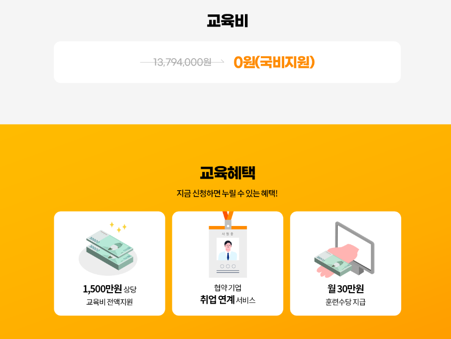 교육비 전액 국비지원 (내일 배움 카드 소지자)