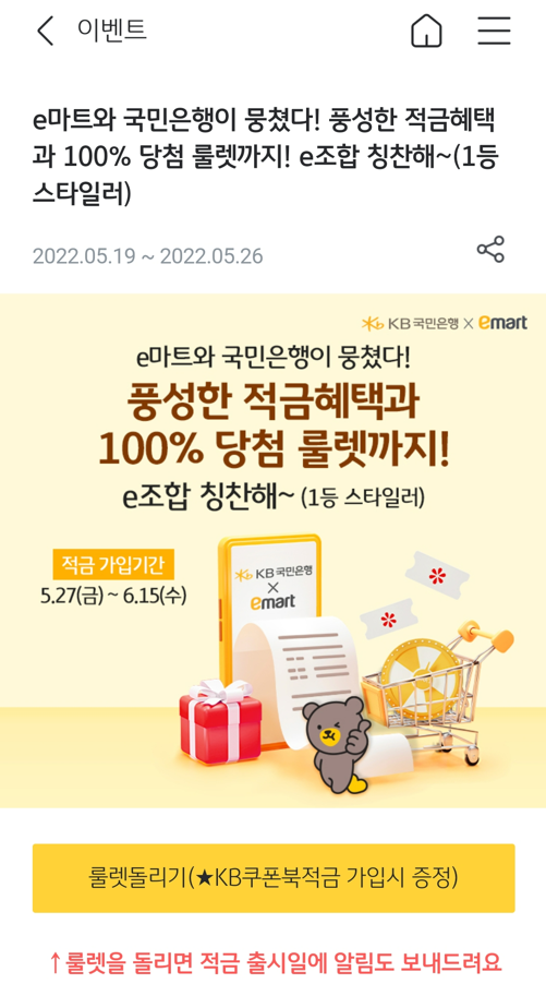 KB쿠폰북적금 with 이마트 혜택 - 룰렛 이벤트