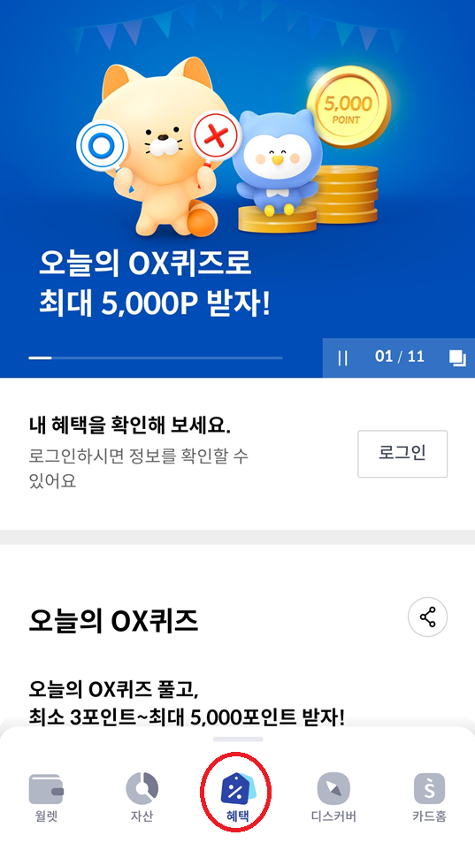 신한플레이앱 > 본문 하단 > 혜택 > 오늘의 OX퀴즈를 선택하여 참여하실수 있습니다.